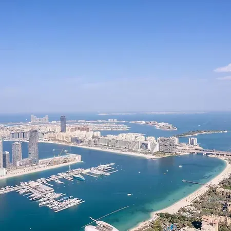 The spacious 86 m² First Class 1Br High Floor Luxury & Palm View Dubai apartment lies about 1 km from the Dubai Media City Amphitheatre and within 10 minutes' walk of Nakheel tube station. At the apartment guests can lounge by a swimming pool or visit the residential Marina Torch Skyscraper, which is located just 150 metres away.